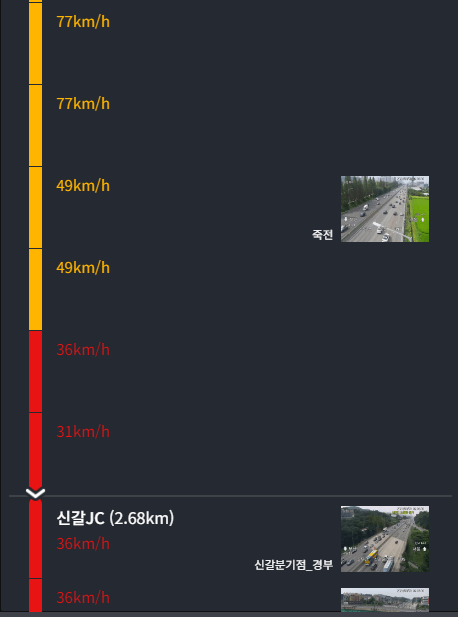 목적지의 정체구간을 확인했다면, 실시간 CCTV를 바로 확인할 수 있습니다.
